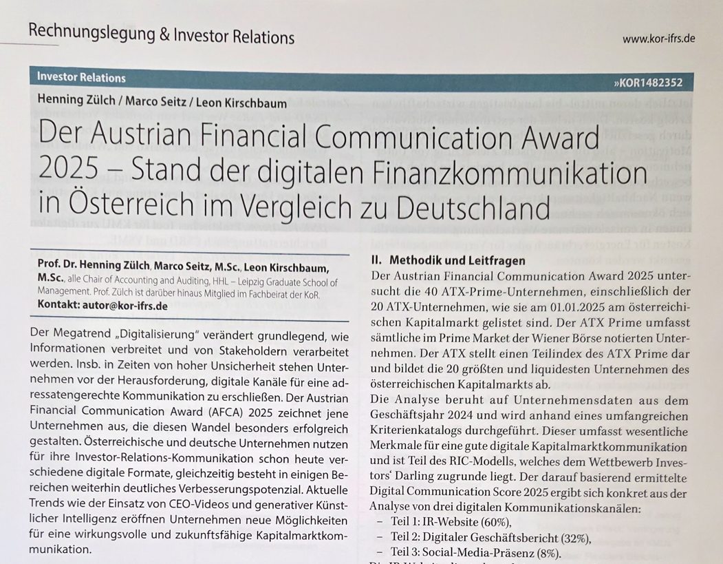 Die Handelshochschule Leipzig (HHL), 1898 als Deutschlands erste betriebswirtschaftliche Hochschule gegründet, gilt weithin als die Wiege der modernen Managementausbildung. Von Anfang an hat sich die HHL einer exzellenten wirtschaftswissenschaftlichen Ausbildung und Forschung verpflichtet und sich damit in kürzester Zeit einen hervorragenden internationalen Ruf erarbeitet. 1992 wurde die HHL als private, staatlich anerkannte universitäre Hochschule mit Promotions- und Habilitationsrecht neu gegründet. Der Lehrstuhl für Rechnungswesen, Wirtschaftsprüfung und Controlling verfolgt das Ziel den HHL-Studierenden profundes und interdisziplinäres Wissen im Bereich Reporting, Investor Relations und Capital Markets zu vermitteln.