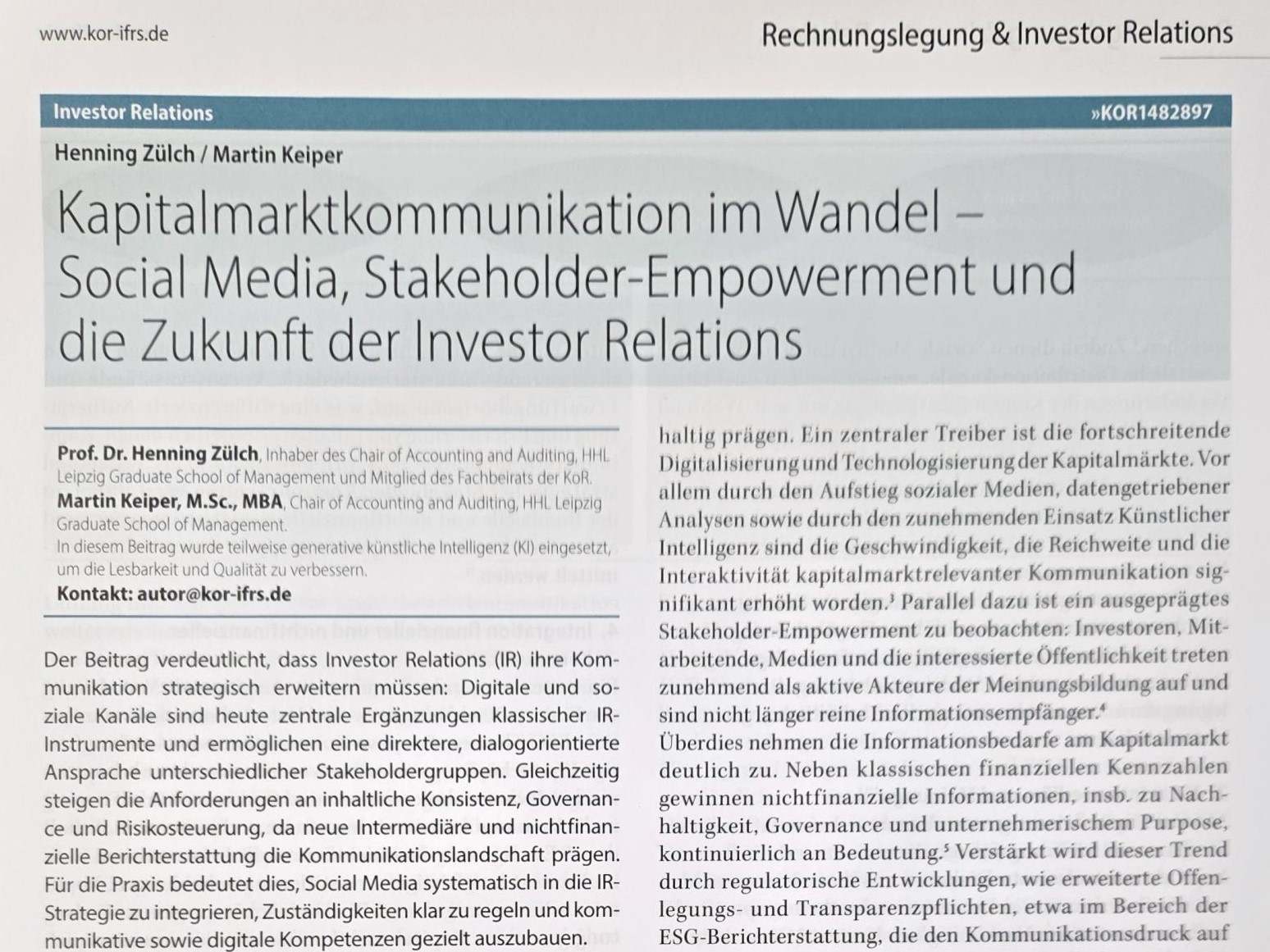 Die Handelshochschule Leipzig (HHL), 1898 als Deutschlands erste betriebswirtschaftliche Hochschule gegründet, gilt weithin als die Wiege der modernen Managementausbildung. Von Anfang an hat sich die HHL einer exzellenten wirtschaftswissenschaftlichen Ausbildung und Forschung verpflichtet und sich damit in kürzester Zeit einen hervorragenden internationalen Ruf erarbeitet. 1992 wurde die HHL als private, staatlich anerkannte universitäre Hochschule mit Promotions- und Habilitationsrecht neu gegründet. Der Lehrstuhl für Rechnungswesen, Wirtschaftsprüfung und Controlling verfolgt das Ziel den HHL-Studierenden profundes und interdisziplinäres Wissen im Bereich Reporting, Investor Relations und Capital Markets zu vermitteln.
