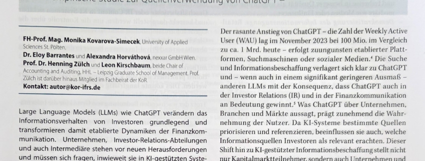 Sichtbarkeit von Geschäftsberichten in Large Language Models– Eine empirische Studie zur Quellenverwendung von ChatGPT
